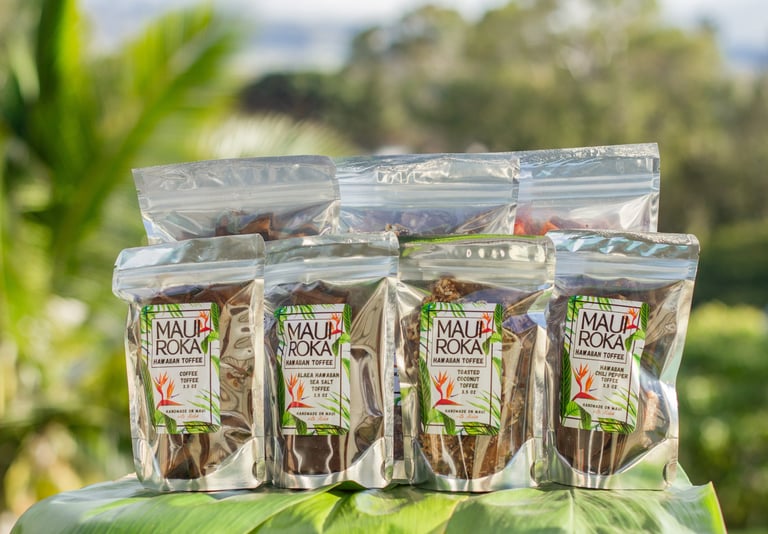 Indulge in the rich, buttery perfection of Maui Roka's toffee, where each batch is hand-crafted with love from the beautiful island of Maui. Our toffee collection celebrates the vibrant flavors of the Hawaiian Islands, offering a unique twist on a classic treat.
